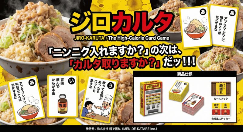 私、ヌードル亭れんげが監修した、二郎系専用のカードゲーム『ジロカルタ』が完成しました!