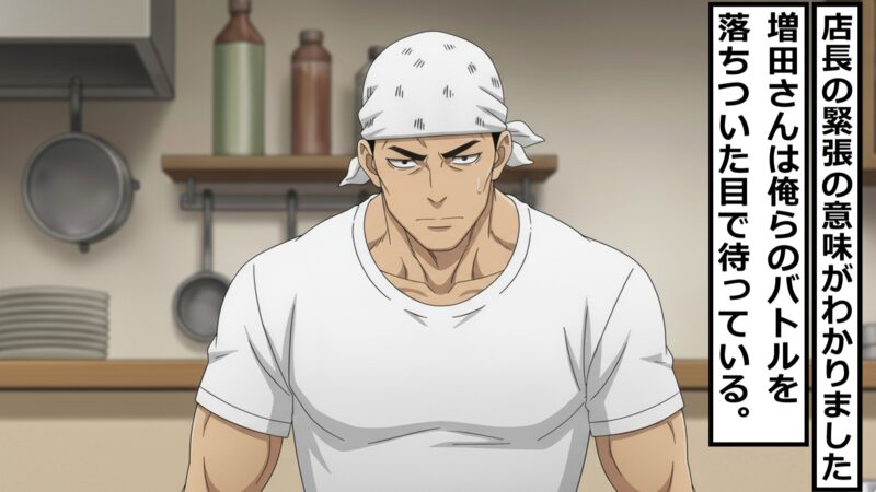 店長の緊張の意味がわかりました。増田さんは俺らのバトルを落ちつた目で待っている。