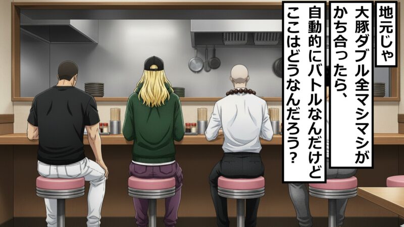 地元じゃ大豚ダブル全マシマシがかち合ったら、自動的にバトルなんだけどここはどうなんだろう?