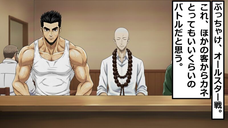ぶっちゃけ、オールスター戦。これ、他の客から金とってもいいくらいのバトルだと思う。